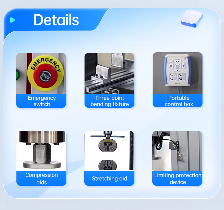 4. Με την υιοθέτηση μιας δομής διπλού χώρου για την ένταση και τη συμπίεση,η λειτουργία είναι βολική και αποφεύγεται η δύσκολη διαδικασία αντικατάστασης διαφορετικών εξαρτημάτων δοκιμής κατά την αλλαγή μεταξύ κάμψης έντασης και συμπίεσης στον ίδιο χώρο.